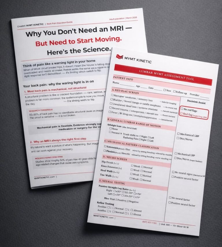 Think of pain like a light bulb turning on — it tells you there’s a problem, but not necessarily where the problem is coming from. It might be the bulb, the switch, or the wiring. That’s why MVMT testing matters: mechanical pain shows up in predictable patterns and reacts to load changes.